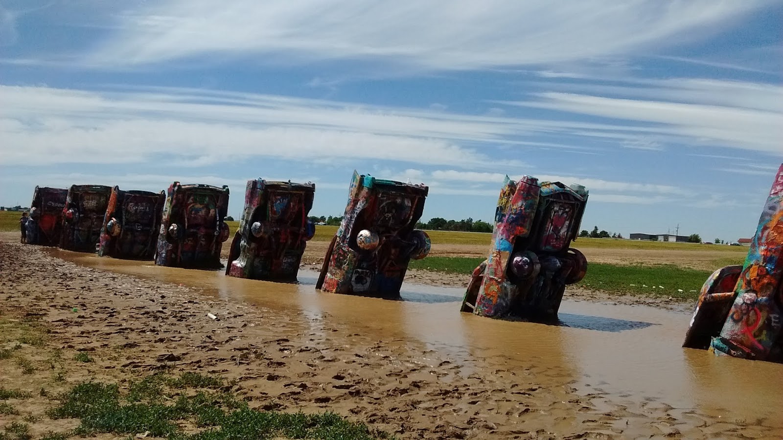 A public art installation since 1974, it's a strange place, a field off the side of the interstate where several old cars are stuck in the ground. And where tourists come to spray paint them, which is actually encouraged.